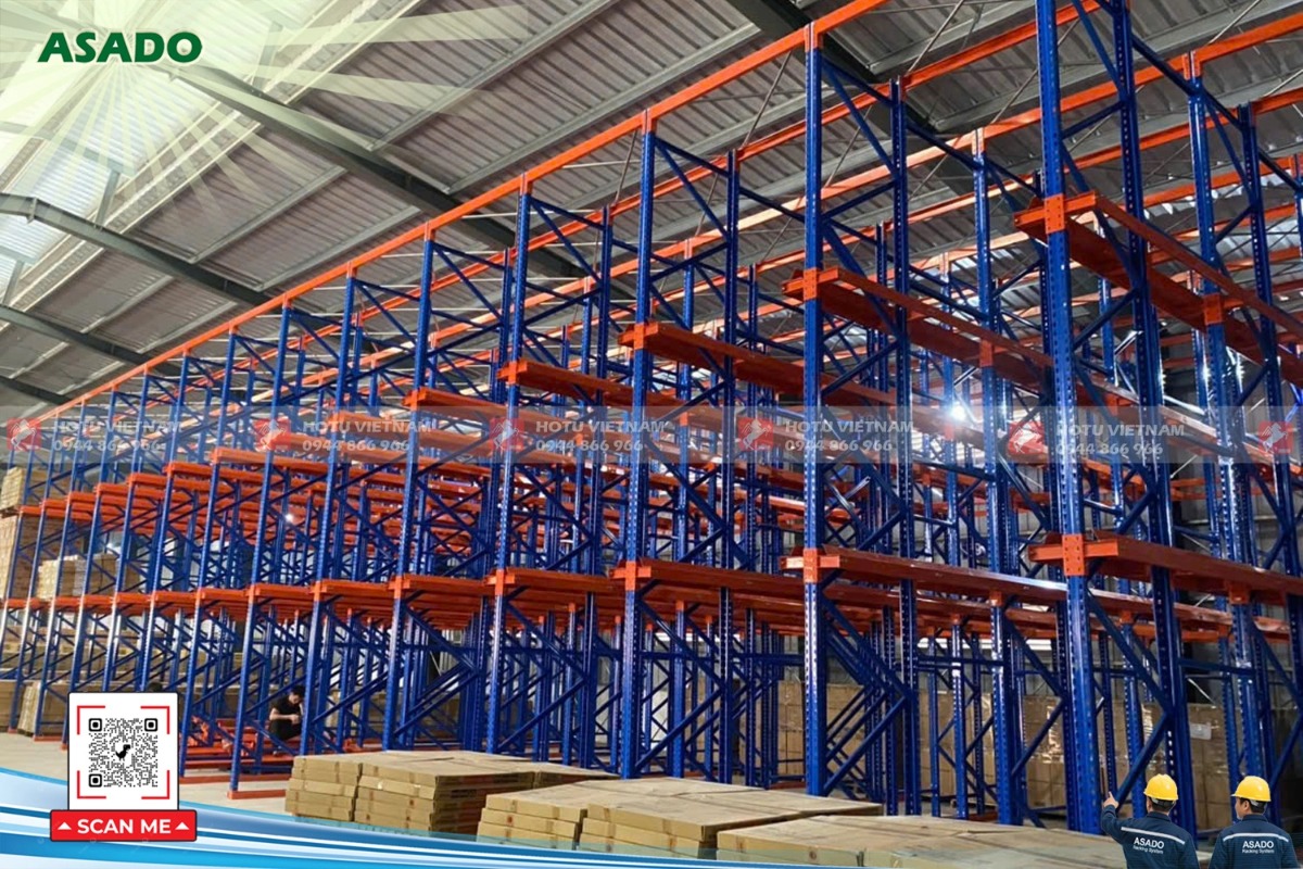 Lưu trữ 2 pallet nối tiếp nhau, tăng mật độ chứa hàng, qua đó giúp tiết kiệm diện tích lối đi, nâng cao khả năng lưu trữ 30–40%. tuy nhiên không linh hoạt bằng Kệ selective và yêu cầu xe nâng chuyên dụng cho kệ này