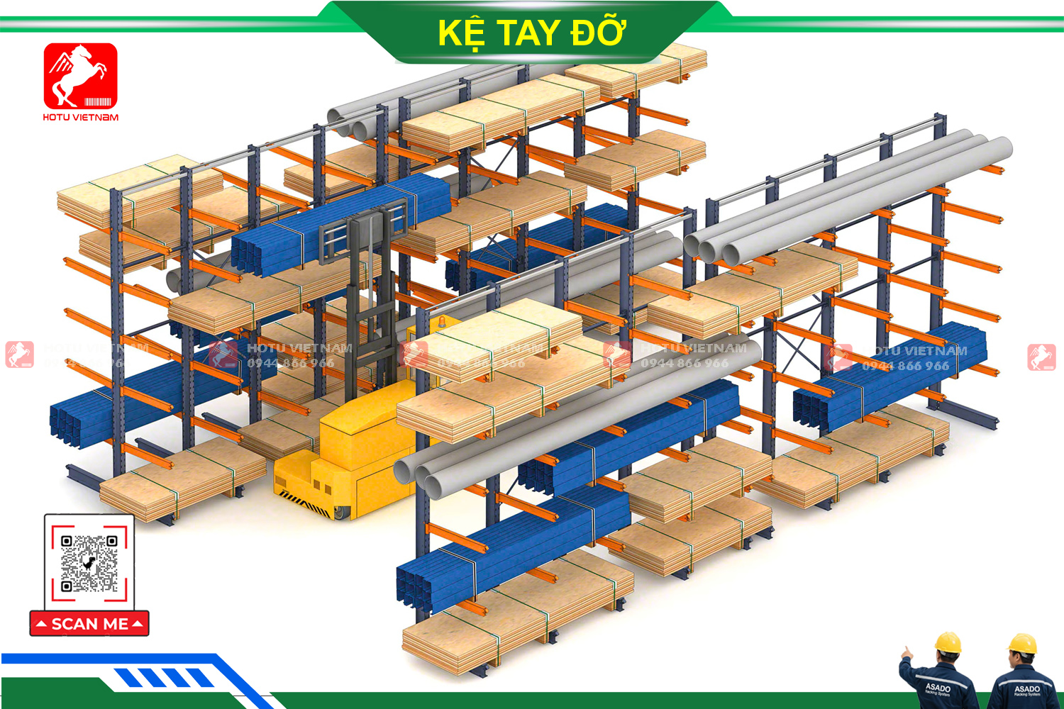 là hệ thống kệ chuyên dùng để lưu trữ hàng hóa dài, cồng kềnh, khó xếp trên kệ pallet thông thường.