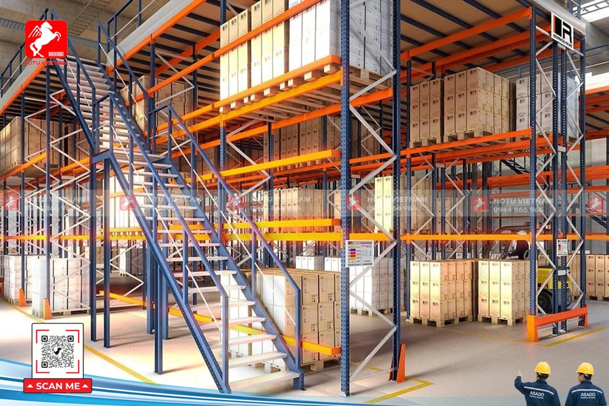Kệ sàn Mezzanine (sàn trung tầng) giúp mở rộng diện tích lưu trữ bằng cách thêm tầng trên cao.