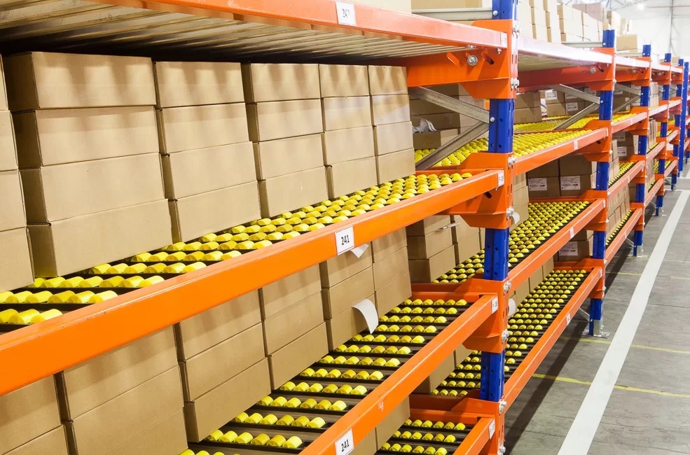 Kệ Carton Flow ứng dụng cơ chế trượt nhờ con lăn, giúp hàng hóa di chuyển tự động từ phía nhập đến phía xuất (FIFO).