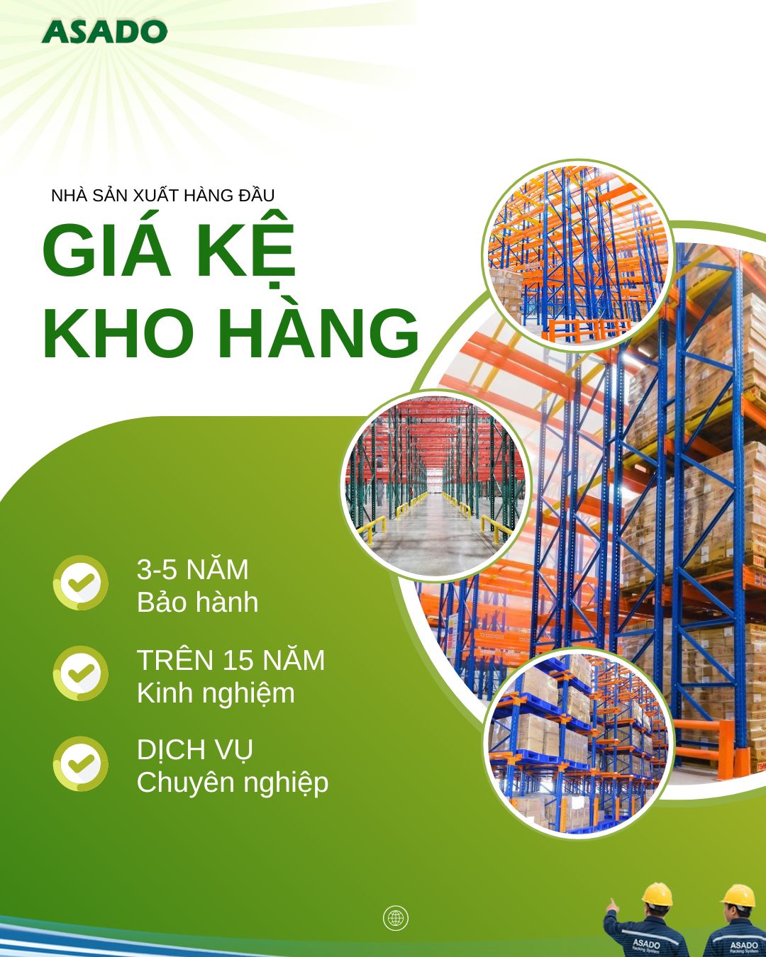 Sản xuất tại Việt Nam: Các sản phẩm giá kệ thương hiệu ASADO được sản xuất trong nước, đảm bảo tiêu chuẩn chất lượng cao nhất và đạt tiêu chuẩn chất lượng ISO 9001 và Chứng nhận kiểm định lực bởi Quartest