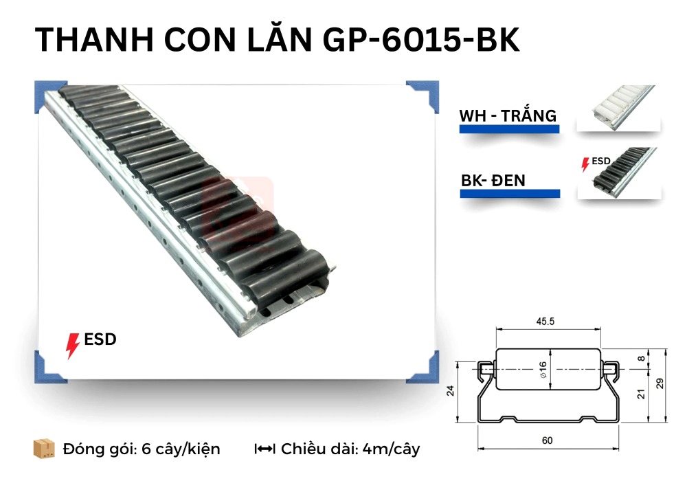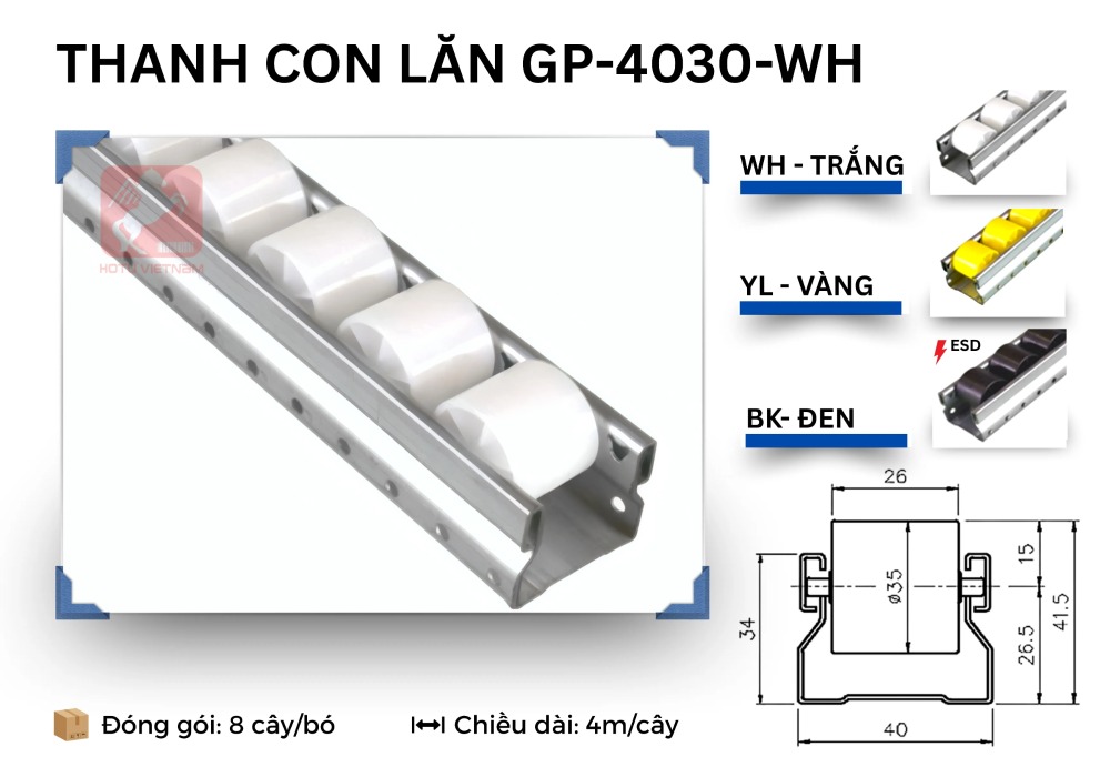 Để tạo nên một Hệ thống FIFO, thứ không thể thiếu đó là Thanh truyền con lăn, tùy vào tải trọng của hệ thống giá kệ FIFO mà khách hàng có thể chọn loại Thanh con lăn 40 Series, 60 Series hoặc 80 Series