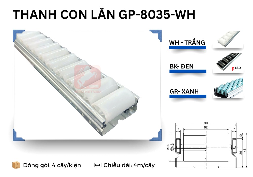 - Mầu sắc: Ivory, Kem, Đen (ESD), Trắng, Xanh Blue, Green, Vàng