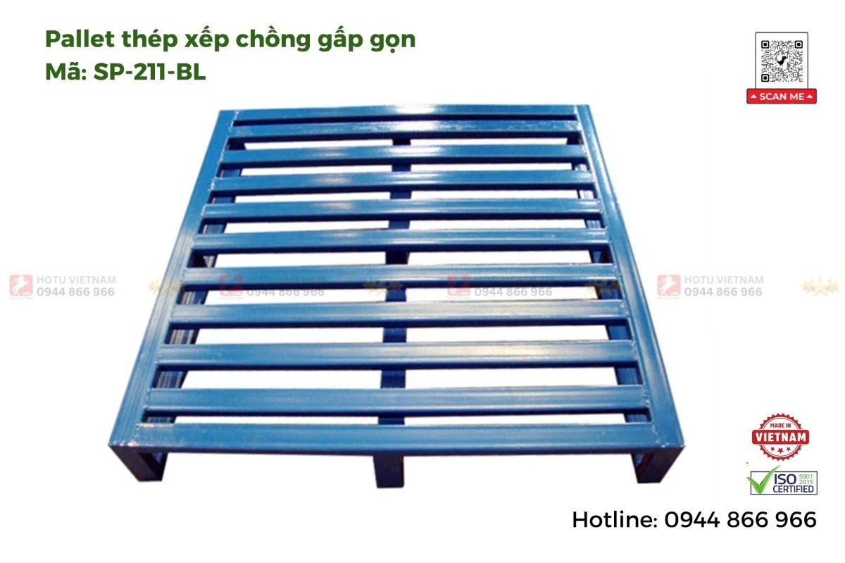 Trên thị trường hiện nay có nhiều loại pallet, tuy nhiên Pallet thép xếp chồng gấp gọn được đánh giá là giải pháp an toàn và hiệu quả nhờ khả năng chịu tải lớn, xếp chồng ổn định, tiết kiệm diện tích và tối ưu chi phí vận hành.
