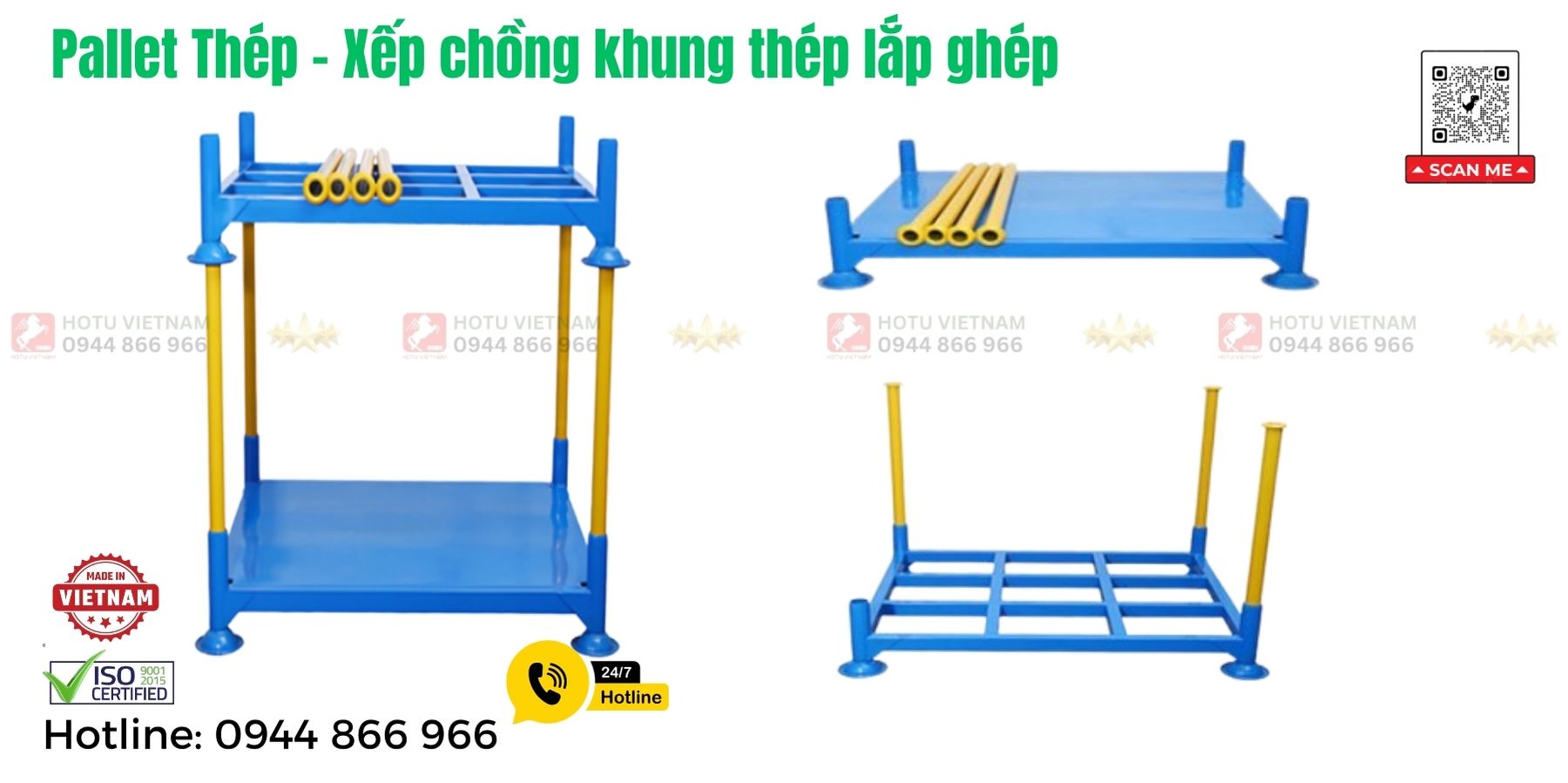 6. Pallet (sắt) thép xếp chồng khung vây thép hộp - lắp ghép