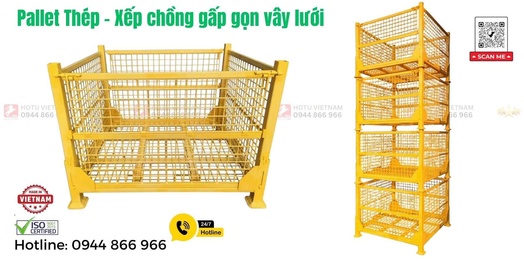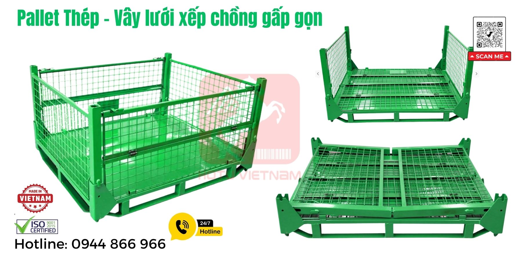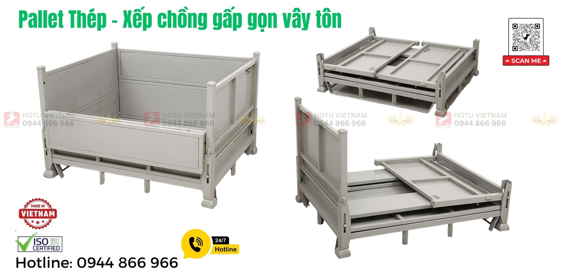 Pallet thép gấp gọn - xếp chồng [ Giá cực tốt ] - Bảng giá 2026