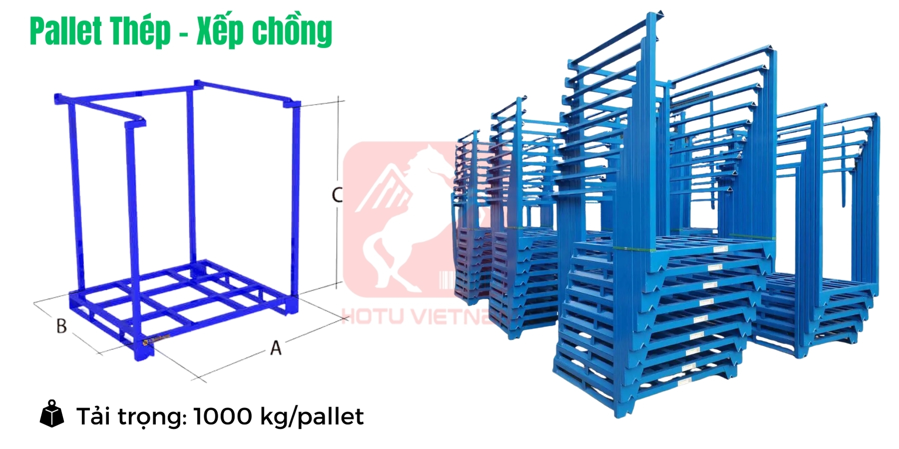 | Pallet thép xếp chồng tải 1000-3000 kg | Giá từ 7,500,000 VNĐ |