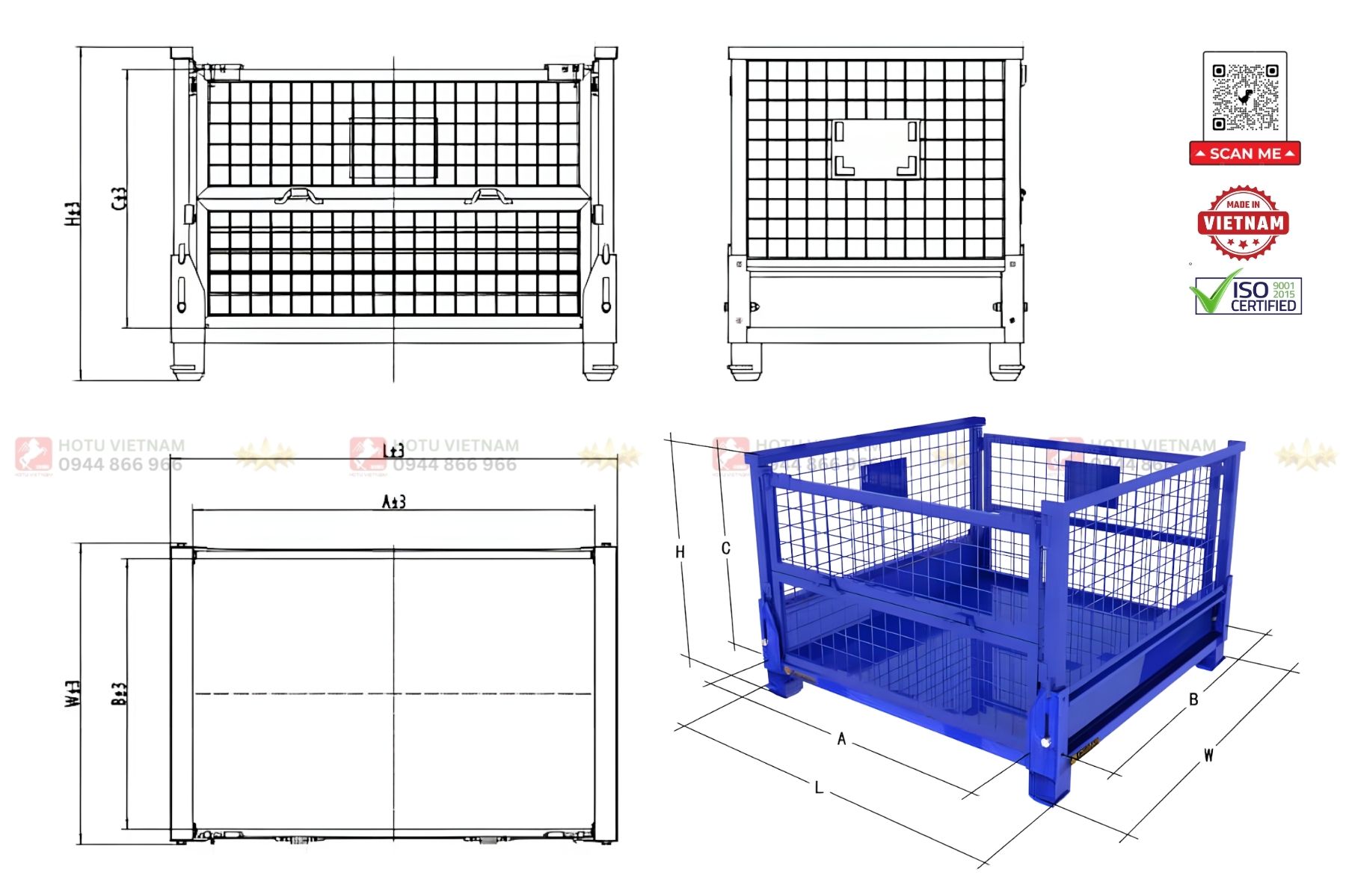 Loại này được làm từ khung thép hộp cứng cáp, được hàn vây bởi các tấm lưới có tác dụng chống linh kiện rơi ra khỏi pallet hàng, với nhưng ưu điểm như