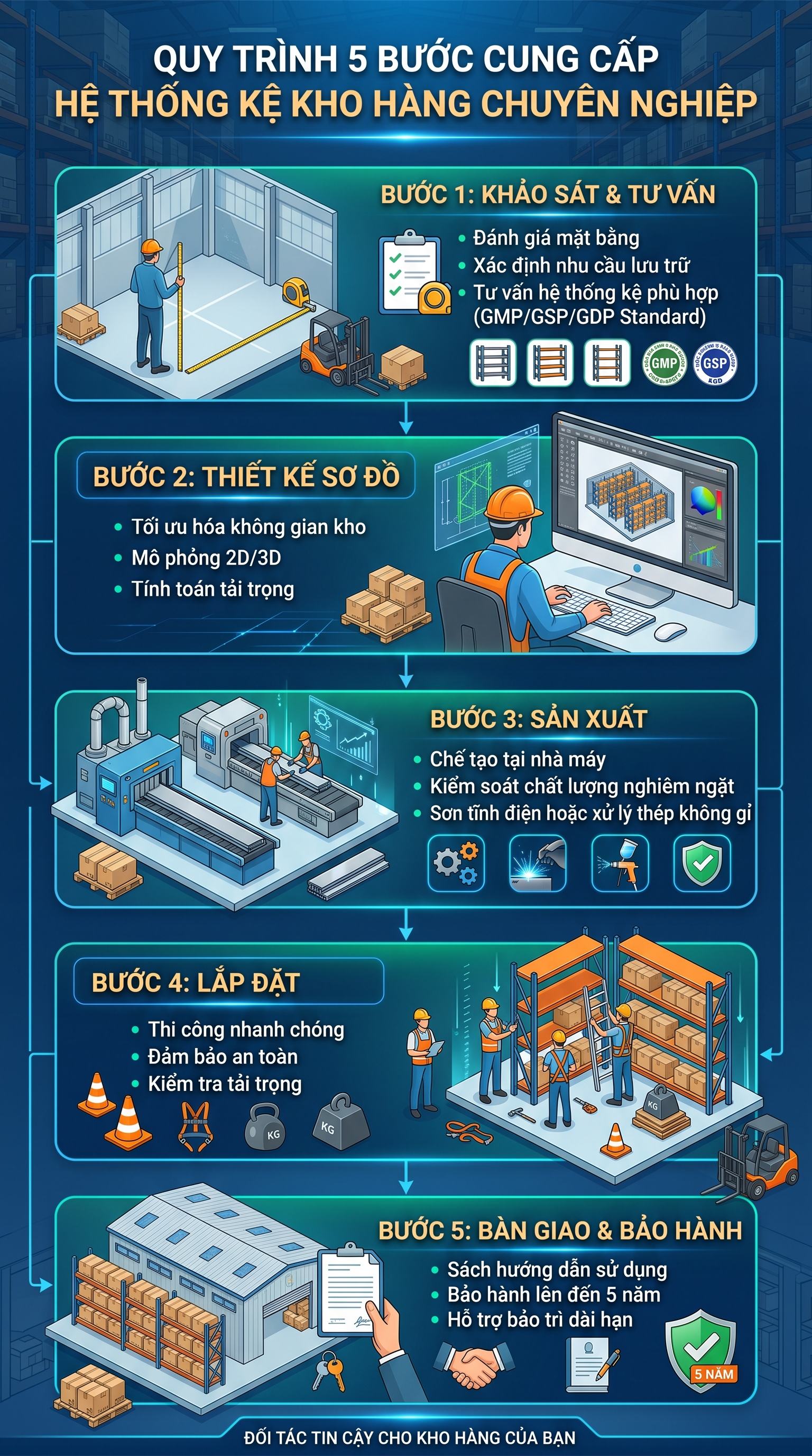 Quy trình sản xuất và lắp đặt Kệ kho dược phẩm