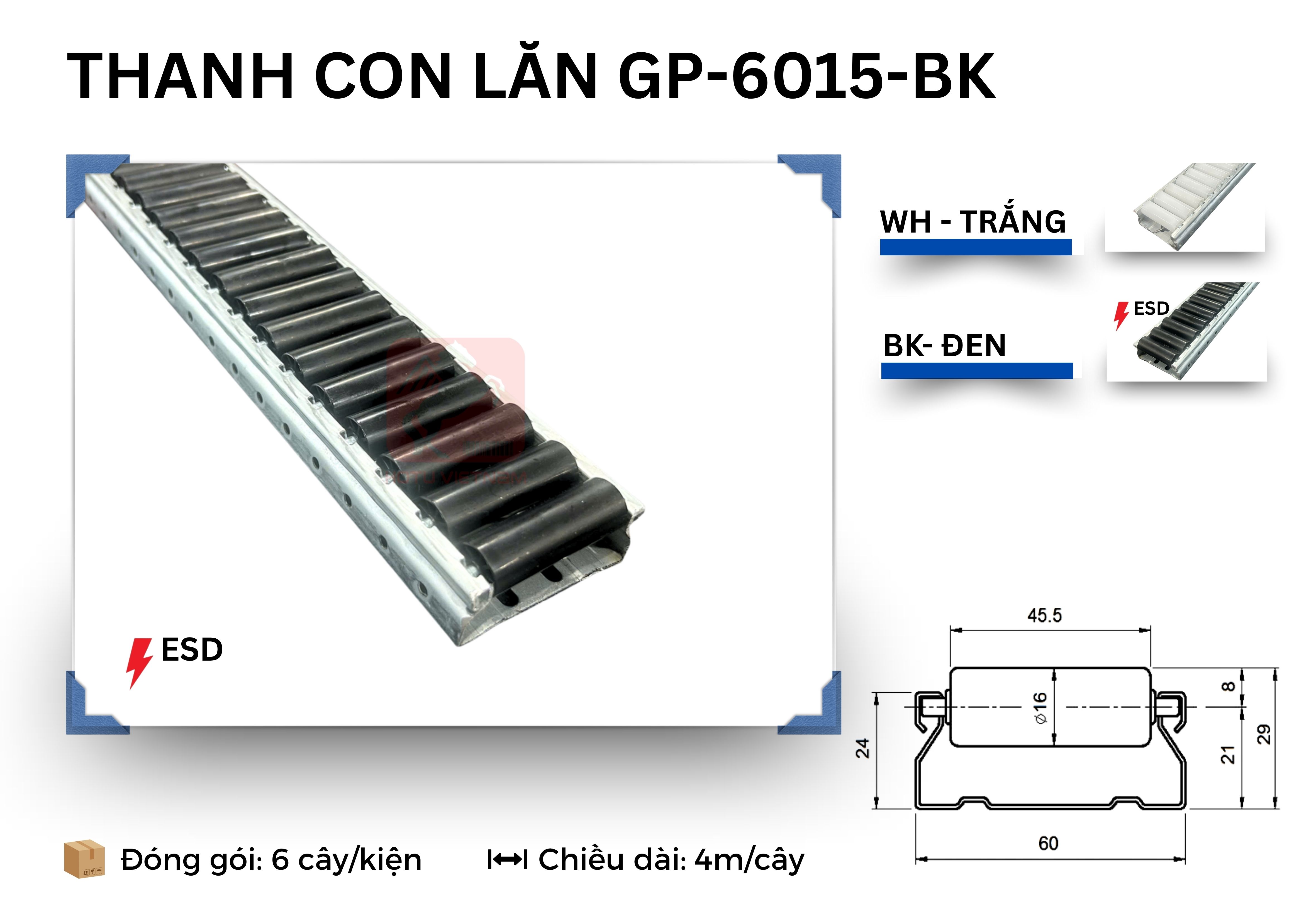 Có loại Thanh con lăn chuyên dụng, con lăn và khung đều làm bằng vật liệu chống tĩnh điện, rất thích hợp cho nhà máy điện tử, linh kiện, phòng sạch.