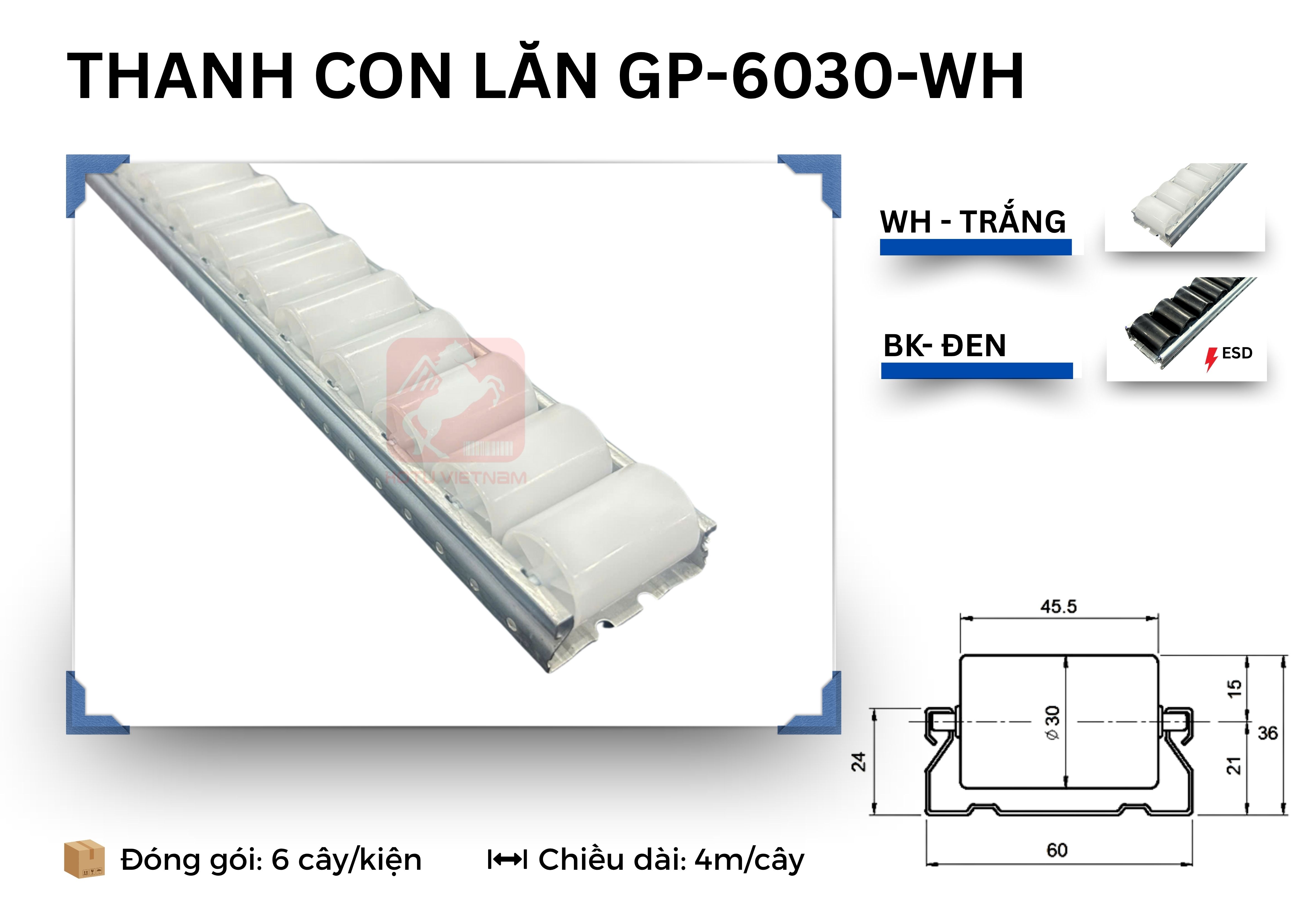 | Con lăn | Nhựa PE - D15 mm và D30 mm |