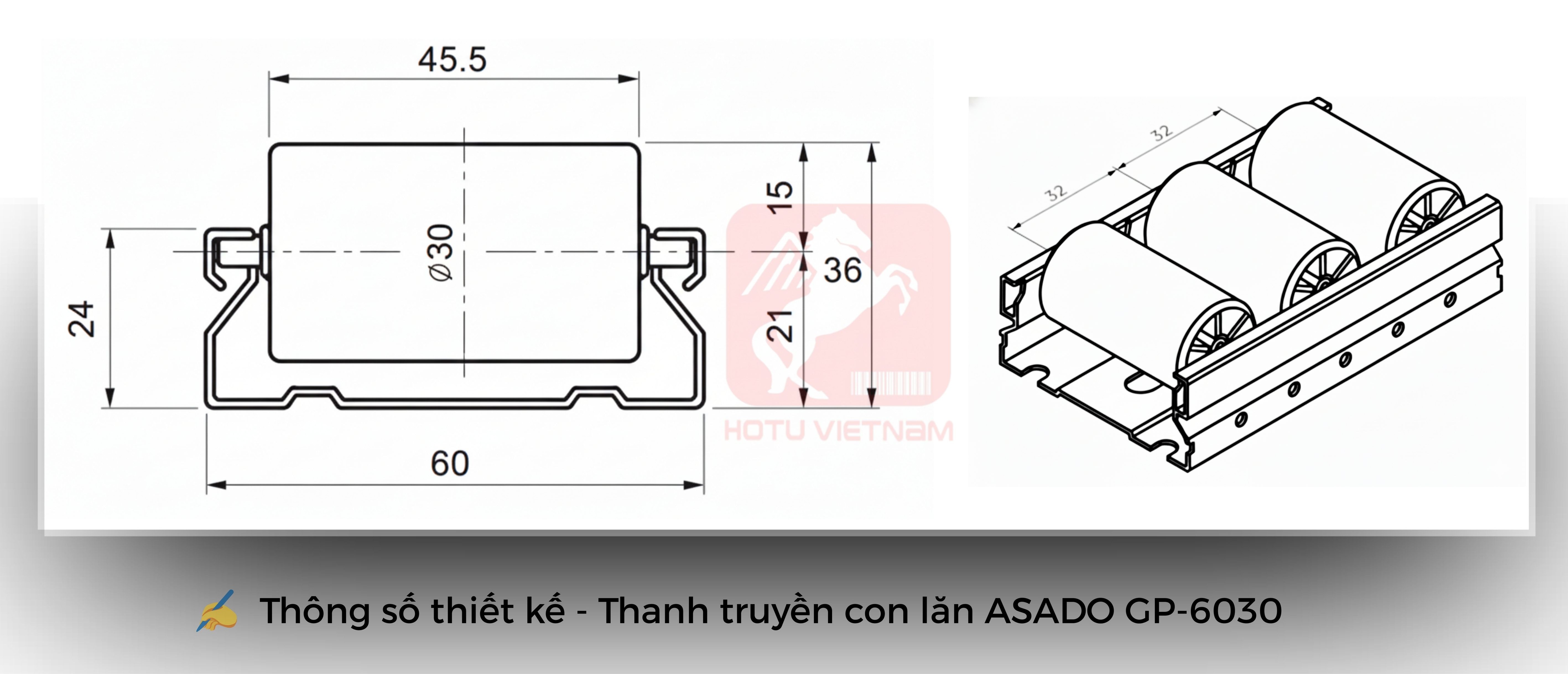 | Con lăn | Nhựa PE - D30 mm |