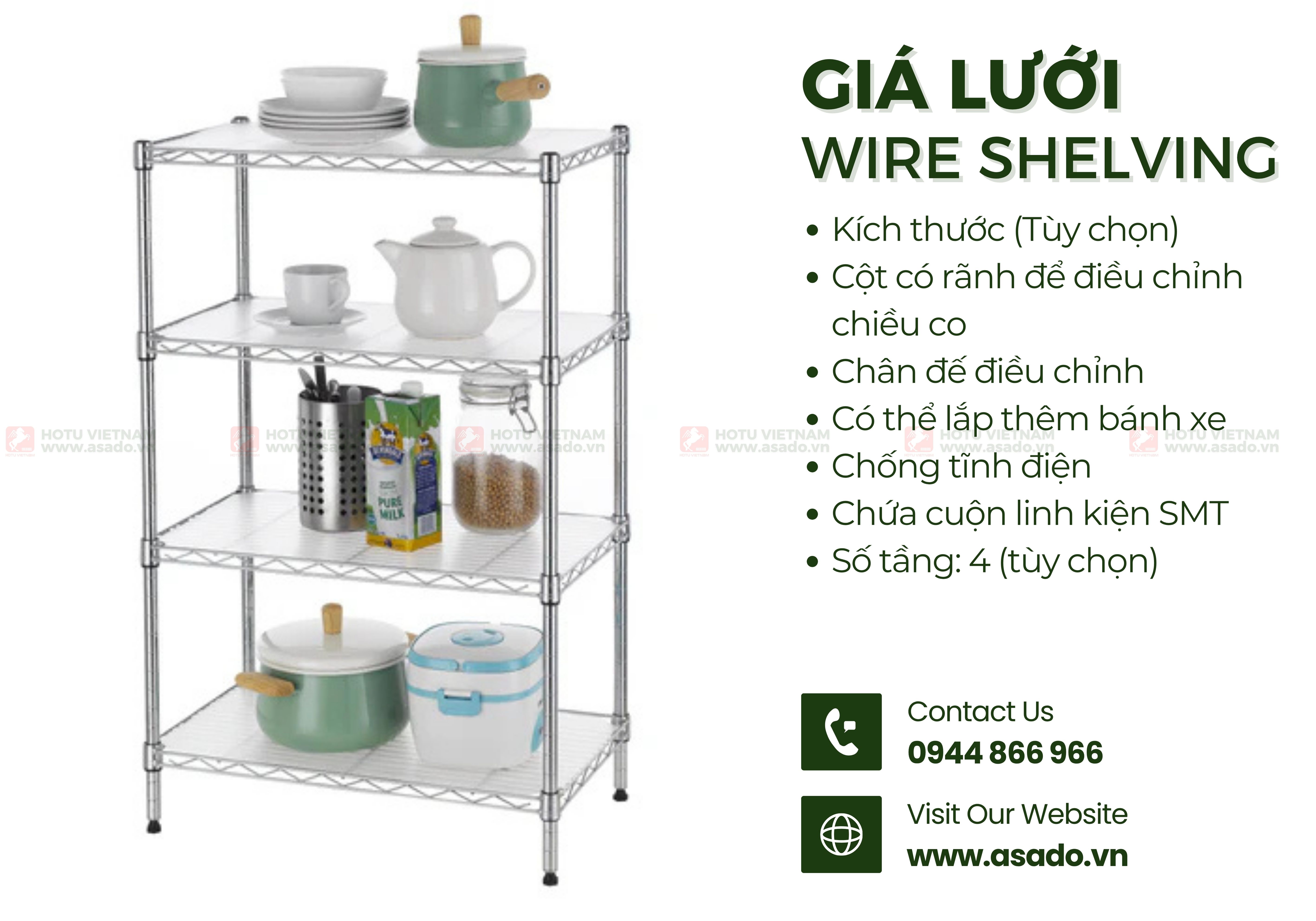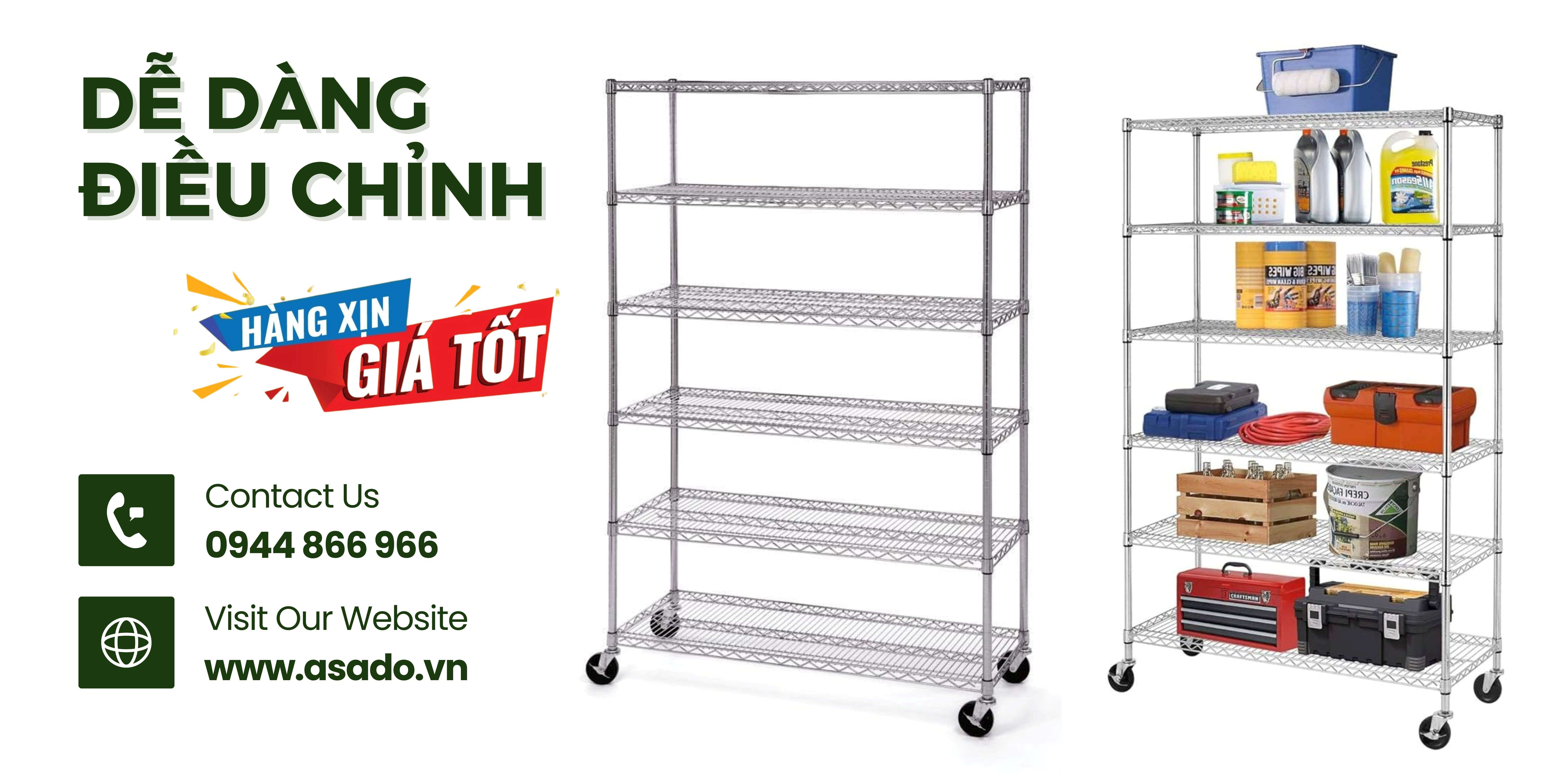 | Siêu thị – cửa hàng | Kệ trưng bày hàng hóa, thực phẩm, đồ khô. |