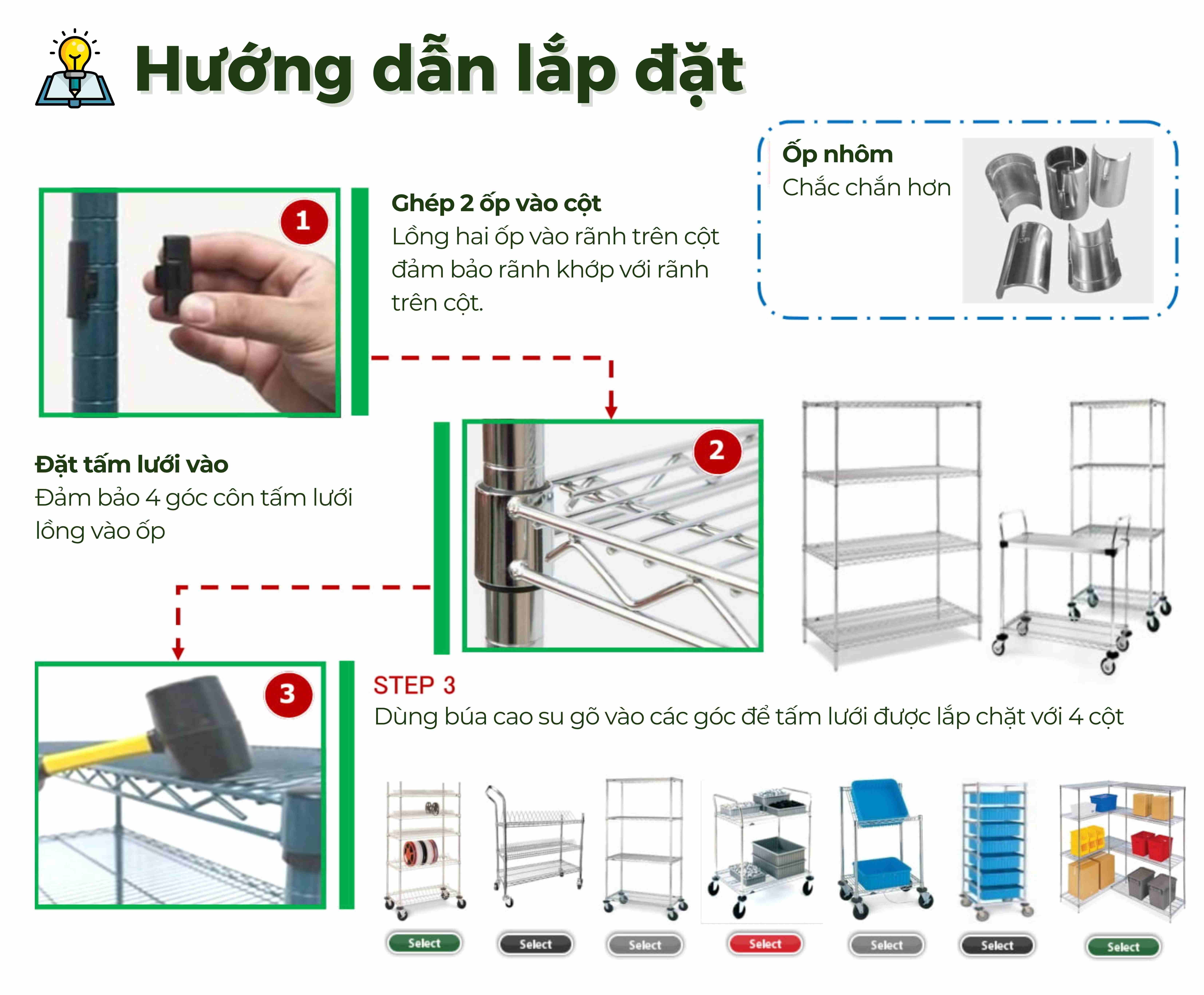 | Vật liệu | Thép mạ Crom, INOX SUS201 / SUS304 hoặc Sơn tĩnh điện |