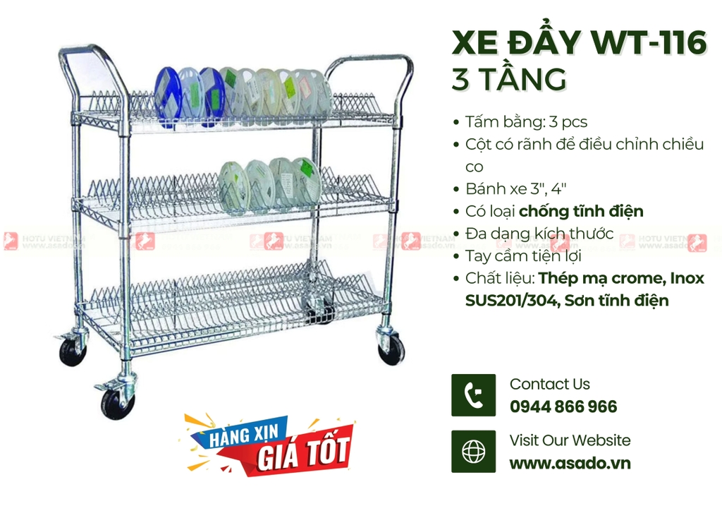 | Xe đẩy lưới 3 tầng - WT-116 | |