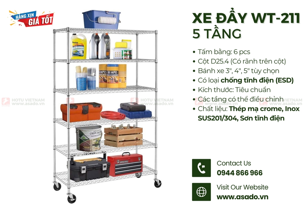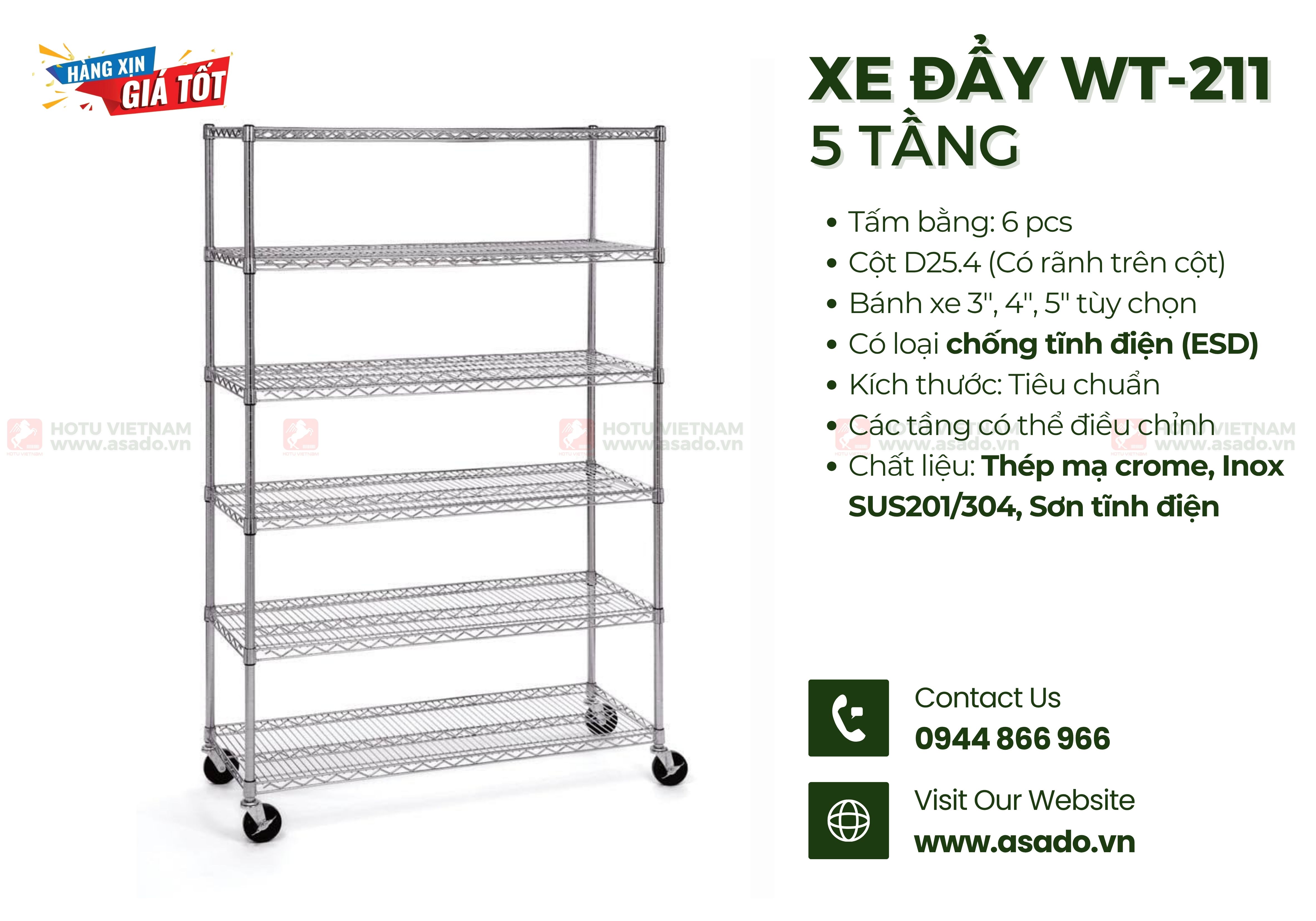 | Xe đẩy lưới 6 tầng WT-211 | |